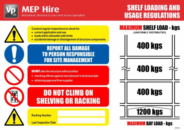 MEPINK76 – A4 Shelf Loading Regulations Sign
